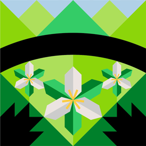 The “Moon over Cold Mountain” block depicts a quilt pattern showing a circular moon, a sharp triangular mountain and a symbol for each of the four seasons.